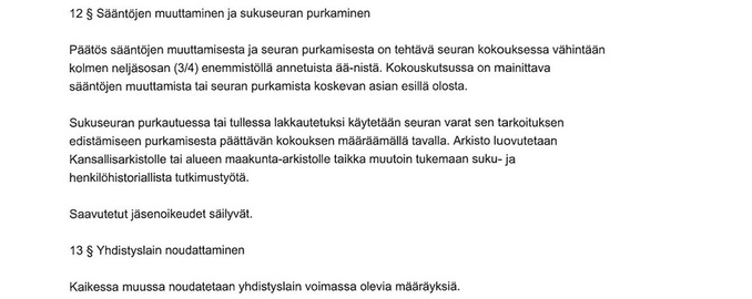 Tarkoituksen toteuttamiseksi sukuseura mahdollisuuksiensa mukaan