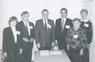 Valokuvat Akaan Sipilän suku - kirjasta. Yläkuva: Akaan Sipilän sukuseuran ensimmäinen hallitus, vasemmalta Raija Leppänen, Erkki Sipilä, Risto Sipilä, Heikki Sipilä, Inkeri Heinänen ja Hannele Nurminen. Alakuva: Ensimmäisen sukukokouksen aluksi kuultiin viialalaisen lehtori Kerttu Stenholmin esitelmä Varrasniemen vaiheista.