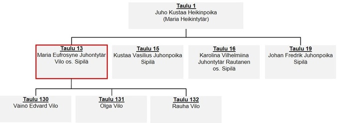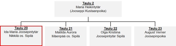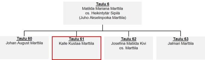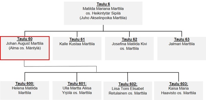 Taulu 6: Matilda Mariana Marttila os. Heikintytär Sipilä