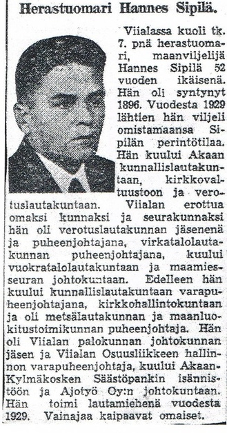 Muokattu Akaan Sipilän suku -kirjassa olevasta alkuperäisestä tekstistä.