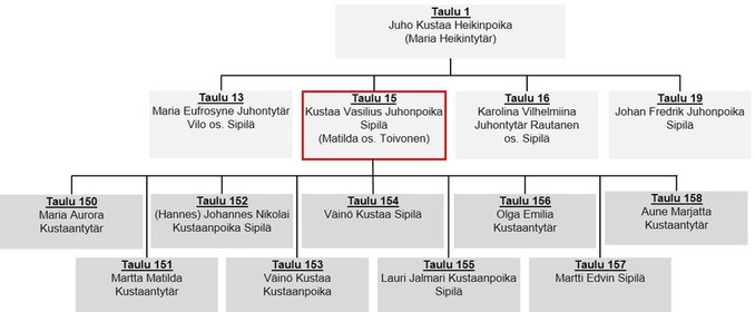 Lähde: Akaan Sipilän suku -kirja (2000)