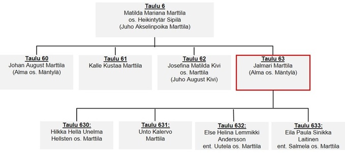 Taulu 6: Matilda Mariana Marttila os. Heikintytär Sipilä